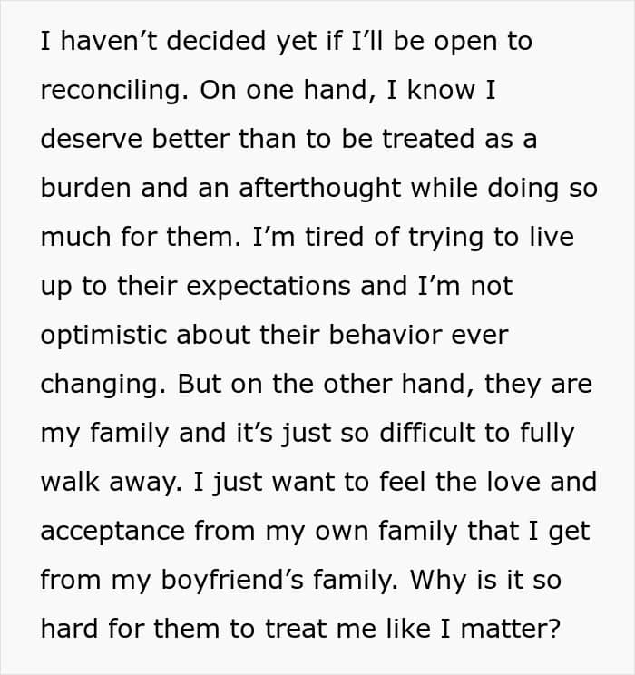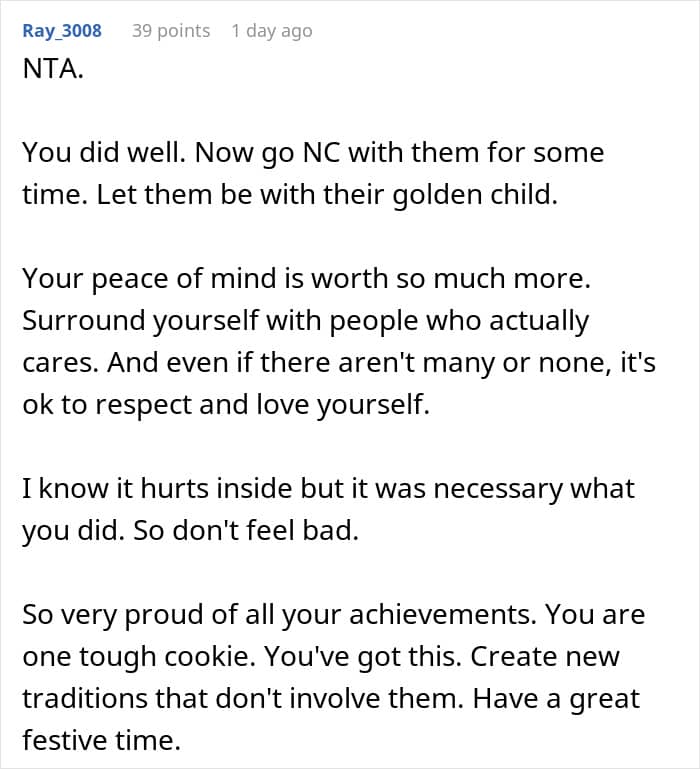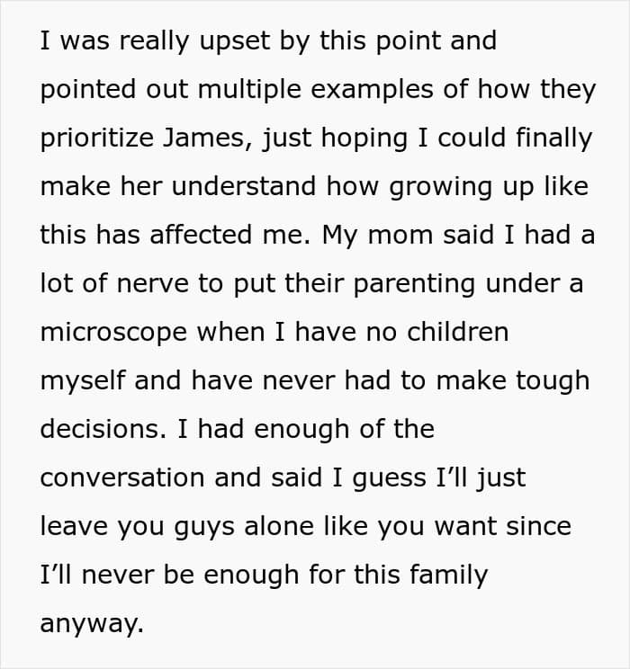 “I’m honestly surprised my post received so much attention! I guess it spoke to people because many others have also dealt with favoritism from their parents, and it’s a crushing feeling to know you will never matter as much as the golden child,” she shared.