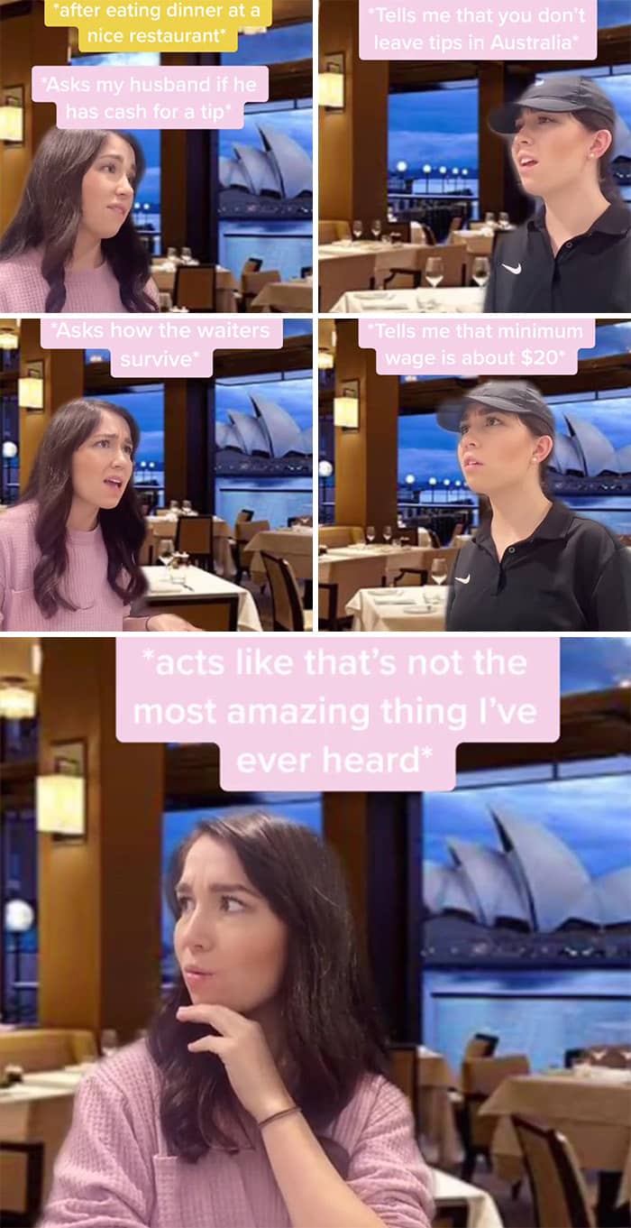 Through her journey of getting to know her new home, the woman shared some positive things she learned throughout time. Kaymie was pleasantly surprised to find out that in case a person needs medical help, their bills are covered by Medicare—a national health insurance program. In the United States, there is no one health care program as it consists of private and public health coverage. In one of her videos, she also revealed that she didn’t know Australians don’t leave tips for waiters as they get a proper salary.