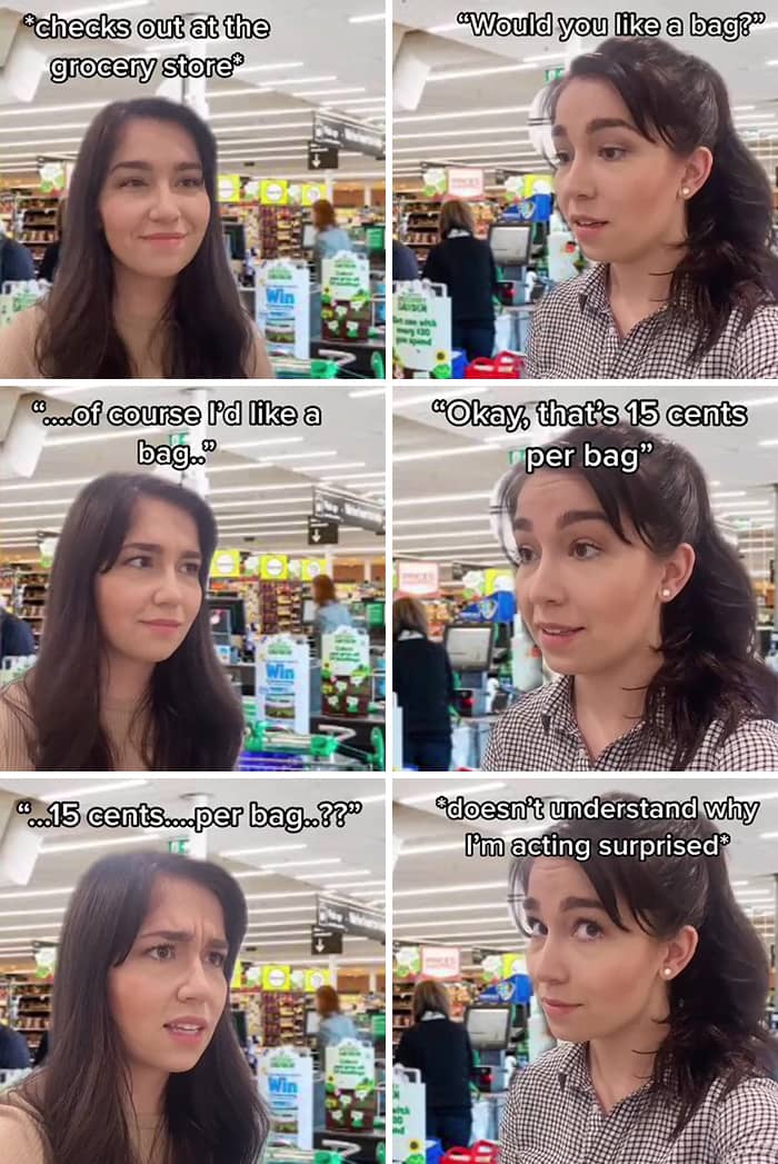 In her video series “Culture shocks: moving to Australia from America”, Kaymie shares her reactions to things that are considered normal in Australia and are handled differently in the United States. Besides learning some new meanings of words, she also had to adjust to the fact that refills are not free and grocery bags and sauce at a fast-food restaurant cost something, too.