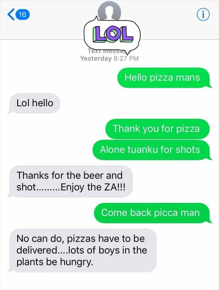 #14 I Drunk Texted My Pizza Delivery Guy Last Night, I Think We’re In Love Now