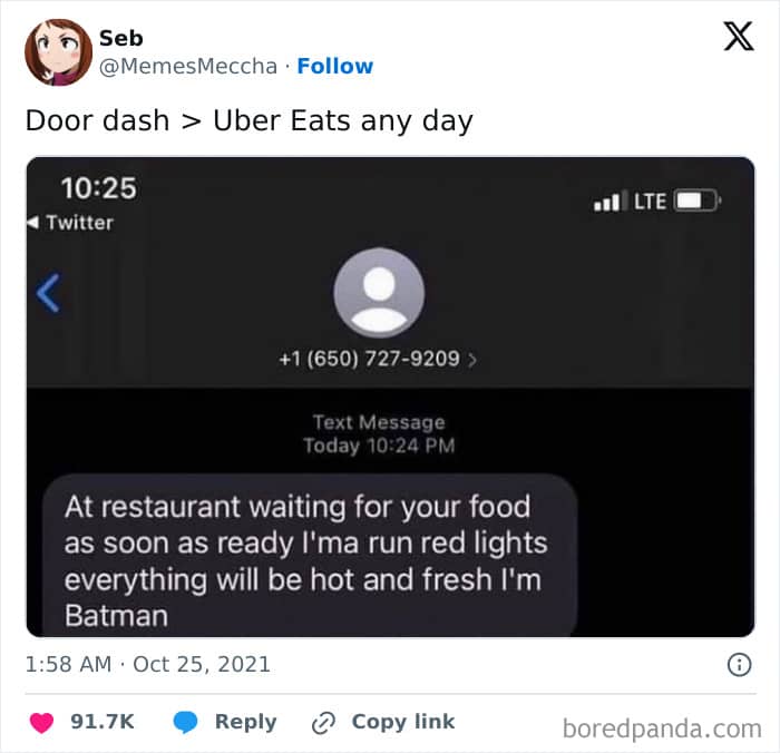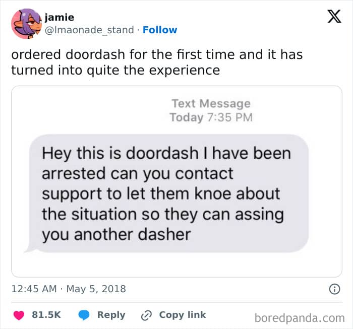 What do you think about these funny interactions between delivery drivers and customers, Pandas? Have you ever received a text from such a goofy driver or delivery person? Or perhaps you’re one of the few lucky ones who were struck by Cupid when you saw your pizza delivery guy? Let us know in the comments! And while you’re here, be sure to check out our previous articles about unexpected pictures from delivery drivers and other funny texts from food delivery drivers!