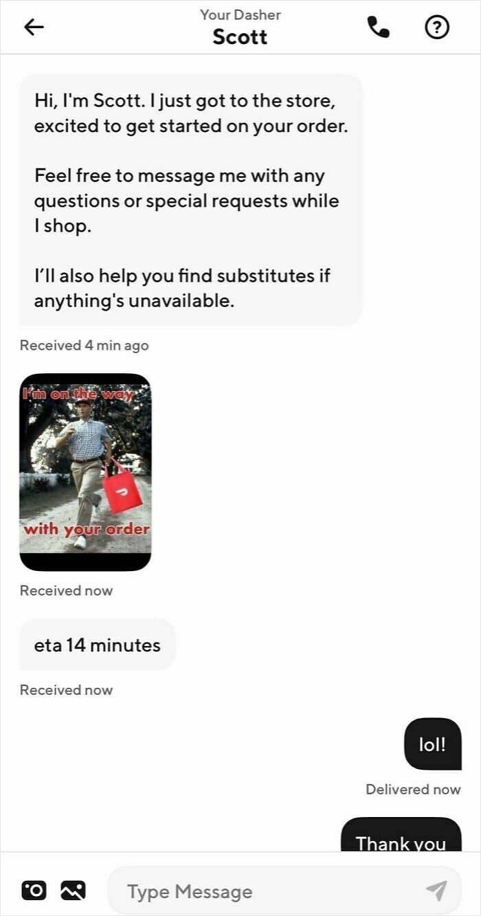 The pandemic ushered in a new way to buy food. Nowadays, many people order dinner and groceries through apps instead of going out. In fact, 28.2% of Americans say they use food delivery apps at least once a week. Sometimes, delivery workers can pass for comedians with how witty they get when communicating with customers.