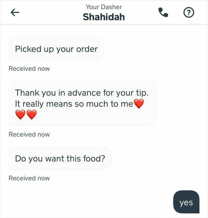 #20 Delivery Driver Texted Me After Dropping Off My Food. Am I Being Too Nice?