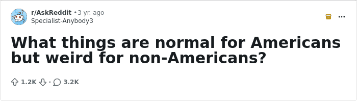 Someone asked, “What things are normal for Americans but weird for non-Americans?” and the answers came flying in at 100 miles per hour. We has put together a list of the best ones for you to scroll through while you wonder why the States is worlds apart.
