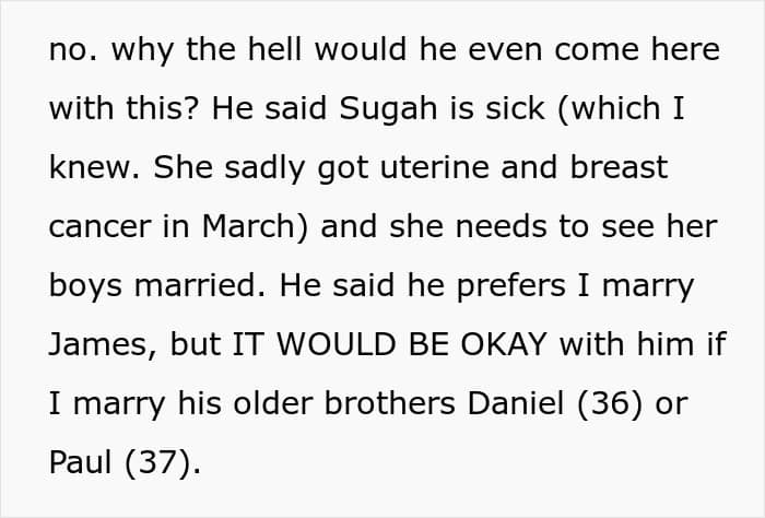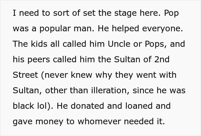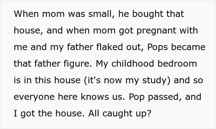 Mr. Miles asked for a drink. Dinah told him everything is out and in the kitchen basically to say “f**k you get your own” in Nice. His sons went to make him a drink and I politely asked what he needed. He said he wanted to have a take with me, alone. Mom said “And what do you need with my daughter, Miles?” And he said that that was between him and me. I said I was drunk and tired so it will have to wait until morning. He had his drink, made some passive aggressive comments, wished us a good evening, and said he will come by later. Mom walked him out.”