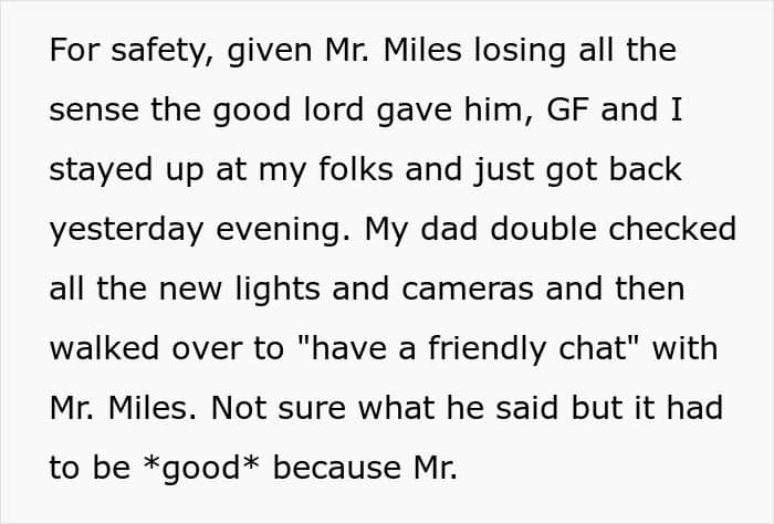 Mr. Miles sort of went back to normal. He smoked his nightly cigars, washed his car, all the usual s**t.