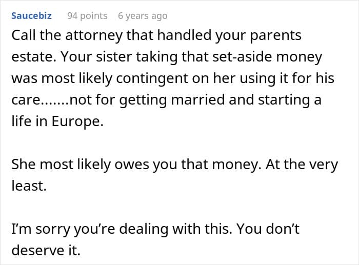 Never did the mom imagine that her oldest daughter, who agreed to be his guardian, would abandon him and hightail it out of the country – for good. She did this just six months after his mother was buried. The man’s other sister is now seeking legal advice.