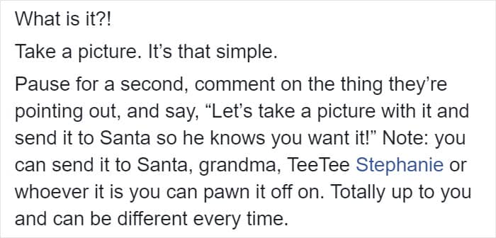 Kristina believes that the hack works so well because the child ultimately feels seen and validated. “Like you’re listening to them and getting excited with them. I’m not promising Emmie all of these toys, nor does she get them all. It’s just hope and joy. It’s the modern-day version of circling all the toys in the JC Penney catalog. We never thought we’d get it all, but it’s fun to dream and feel like your parents are looking.”