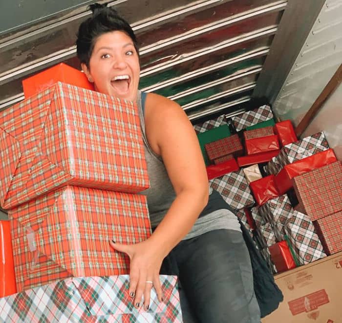 The mom-of-three said everything started last year. “Our town was hit by Hurricane Michael, a Cat 5 hurricane, and it was devastating. I was approached to help find a way to provide Christmas toys for a local Title 1 Elementary school. The church that usually supplies Christmas gifts to Lucille Moore Elementary couldn’t do it last year because everyone was struggling so much. So I made an Amazon Wishlist for all 500 kids, kindergarten – 5th grade, and went LIVE on Facebook and called my friends to action. Within days, our house was filled with toys from people all over the US. Then we added a second school and before we knew it, we had our own USPS truck delivering toys for a week,” she told We.