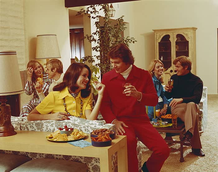 Bright sport jackets with wide lapels. I cringe whenever I see a show about the ’70’s.