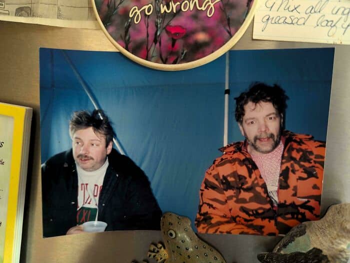 #69 Found These Fine Gentlemen In A Pile Of Trash Near My Storage Unit…. No Idea Who They Are, But They Look Like They’d Be Fun To Have A Beer With! So Now They Reside On My Refrigerator!