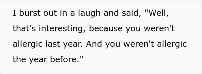 Later, the brother gave an interesting explanation for his wife’s “allergies.”