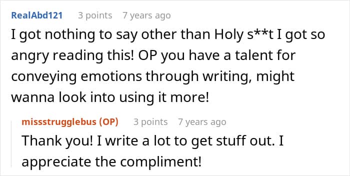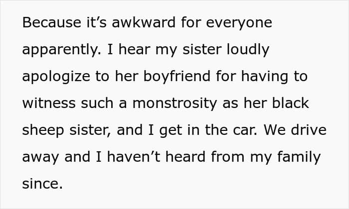 And then, they had the audacity to blame the victim for finally gathering up the courage to walk out of the disastrous dinner. The entire situation is deeply unfair and infuriating to read.
