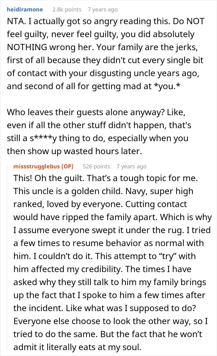 There is absolutely no excuse for how the woman’s family treated her. The biggest problem is that they didn’t believe her when she told them that her uncle had taken advantage of her while she was intoxicated.