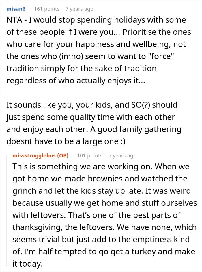 One woman, a trauma victim, opened up to the AITA online community about her disastrous Thanksgiving family dinner. She shared how her relatives left her and some of the guests alone for hours, and then tried to blame her for finally having had enough and walking out. Scroll down for the full story and to see how the internet reacted.