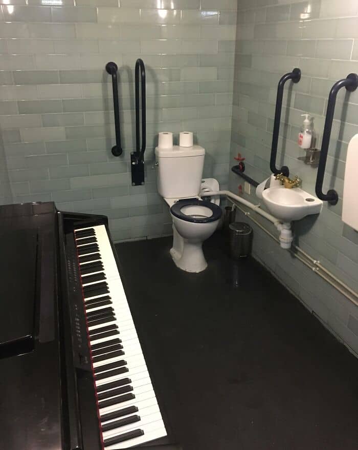 #46 This Restaurant’s Bathroom Had A Piano In It