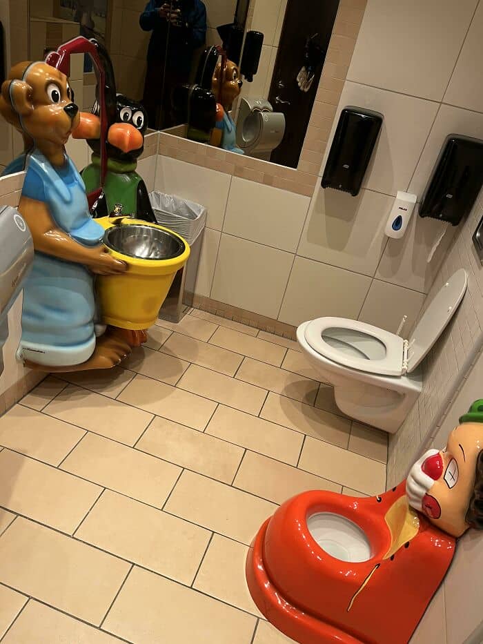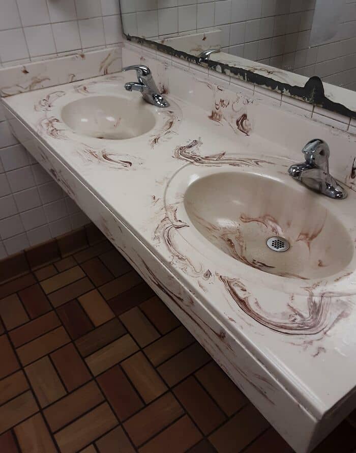 #29 Upon Walking In This Bathroom At The Supermarket I Was Initially Disgusted At Filth And Lack Of Cleanliness Until A Closer Look Revealed It Was Designed This Way