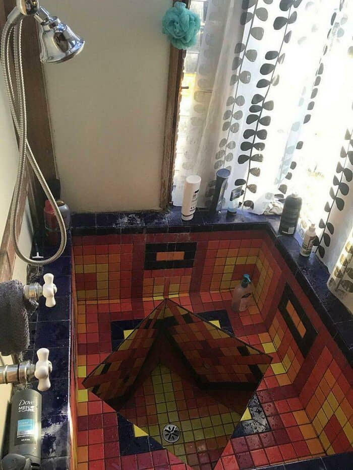 #78 A Shower With A High Entrance, Sharp Edges, Garish Colors, And A Hole