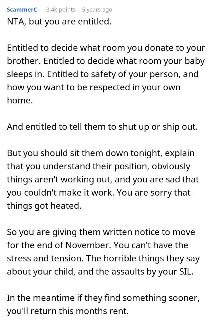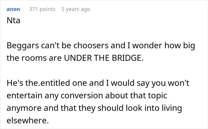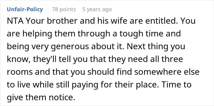 So when this Redditor’s brother and his wife could no longer afford their home, she opened her doors and let them move in to live with her for free. But instead of appreciating the help, they threw a fit over the size of the room they were given and followed it up with a stream of rude remarks.