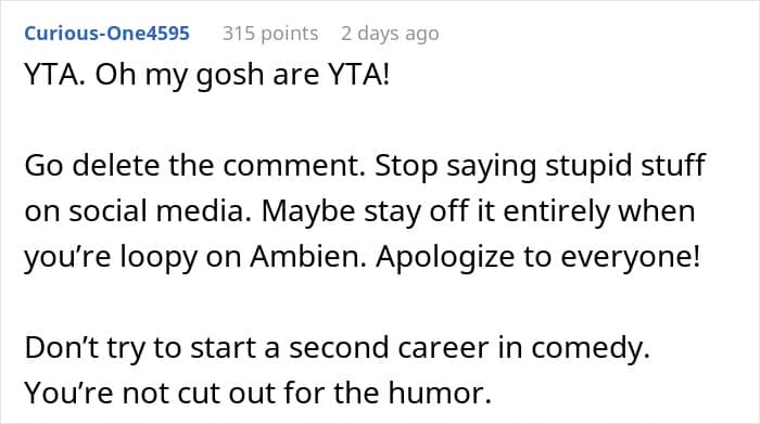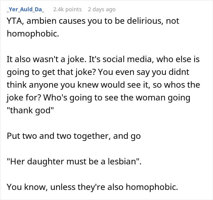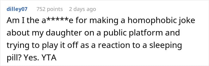 It’s unclear if the OP would have done that, too, if she knew the consequences her comment would bring. Be that as it may, two years ago she decided to post what she considered a joke, but her daughter and quite a large part of fellow redditors didn’t find it to be that funny.