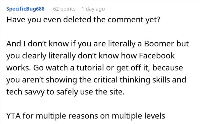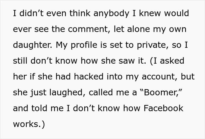 This Redditor, for example, posted a comment on Facebook, forgot about it, and moved on with her life. But her daughter discovered it two years later and got so mad that she said she might not show up for Christmas. And the fact that the mother said it was just a joke didn’t really change much, either.