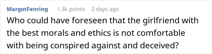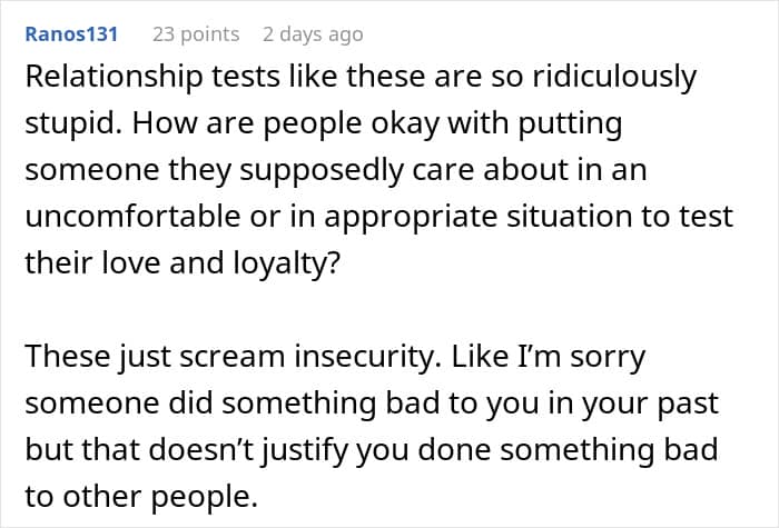 Netizens expressed strong disapproval of the OP’s boyfriend and his friends’ “loyalty test,” emphasizing that deceiving someone to gauge their reaction is manipulative and unnecessary. They also noted that testing partners often backfires and signals immaturity, insisting that relationships require trust rather than games.