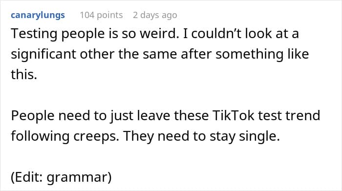 What would you do if you were in the OP’s shoes? Would you stay with someone who tested you like this, or would it also be a dealbreaker? We would love to know your thoughts!