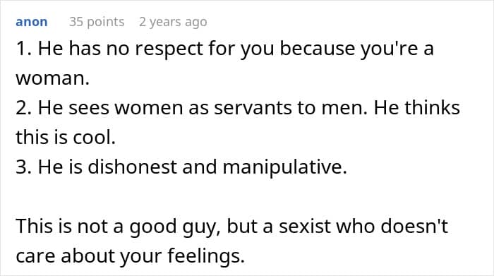 To be honest, who can blame OP for being annoyed? A deal’s a deal, and her husband not only backed out of it, but actually tried gaslighting her when she called him out. The whole situation reeks of sexism and women being forced into traditional gender roles. But what’s the deal with that, anyway? We went looking for clues.