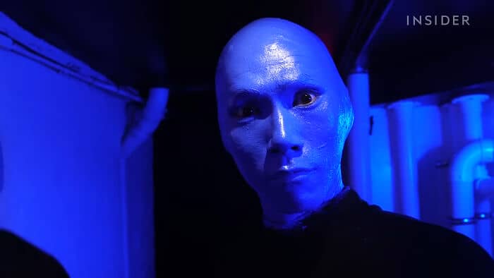 I did catering at a sports venue and the blue man group was getting ready in their dressing room. I witnessed them blasting radiohead, globbing on their blue paint and doing various actions in the mirror after applying blue paint with their hands. Was very strange vibe while I was setting up their veggie and hummus platter 😂.