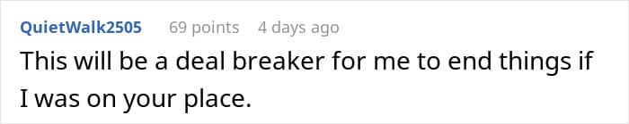 People were shocked by the man’s actions and told the woman that what he had done was a definite deal-breaker