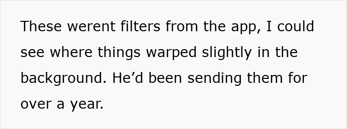 Things seemed to be going smoothly in the OP’s relationship until she came across many airbrushed photos that he had sent to his family of her. She had never really suspected anything because his family weren’t very chatty people and hardly responded to the pictures he used to send.