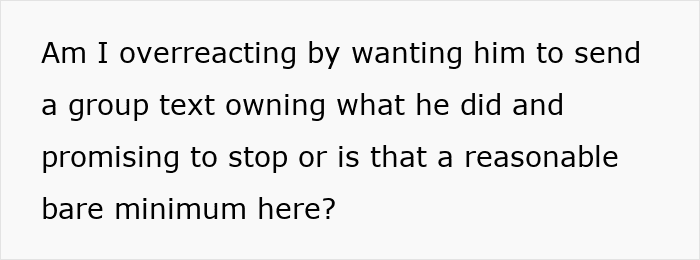 To make her partner face the consequences of his actions, the OP told him that he needed to send a group text explaining everything to his family and that he couldn’t ever do such a thing again. Unfortunately, he didn’t agree and felt she was overreacting about just a couple of pixels being corrected.