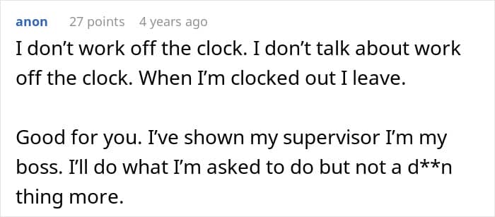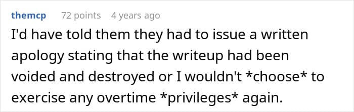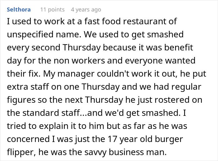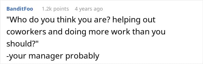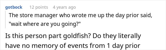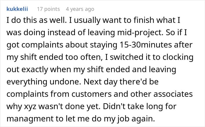 The author of the story clearly did not have a manager who wanted to support her. Instead, she was met with a strange rule and criticism despite already putting in hard work. It is a real shame when a negative experience comes not only from customers, but also from inside the workplace itself.