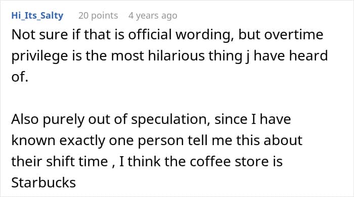 RELATED:The coffee shop manager banned the employee from taking on any overtime