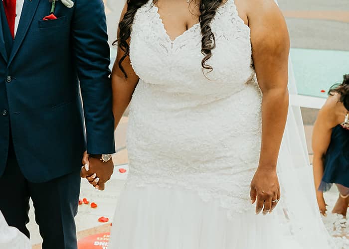 “That said, your own expectations of how you look will always feel more impactful than how you will actually look to your spouse and guests—we promise, they’re looking at you and your beaming smile—not what’s on your body.”