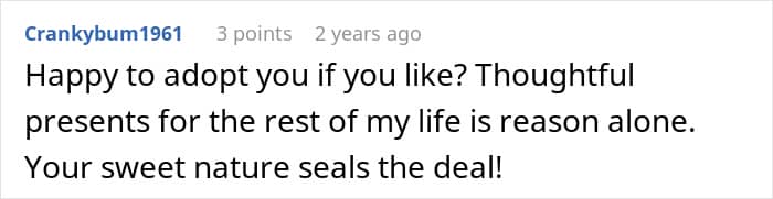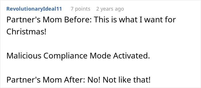 The truth is that petty revenge stories satisfy something primal in us, the need to see patterns of bad behavior corrected, to watch people learn that actions have consequences, and to witness someone finally stop setting themselves on fire to keep someone else warm. We’re not celebrating cruelty, we’re celebrating boundaries. And if those boundaries come with a side of schadenfreude and some dramatic food-throwing, well, that just makes the story better. The boyfriend’s mother will survive not getting a Christmas present, but she might finally learn that you can’t treat people terribly and still expect their effort.