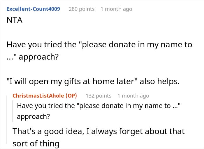 I don’t know about you, but I don’t think the OP is the bad guy here. She’s trying to make everyone’s life easier, including her own. Plus, her anti-list isn’t some Scrooge-like decree to cancel Christmas—it’s a helpful guide with a sprinkle of honesty. And let’s not forget, her family did start hopping on the anti-list bandwagon, so clearly, she’s onto something.
