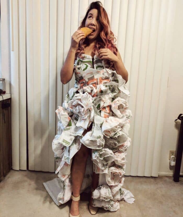 #20 I Uh… Made A Wedding Dress Out Of Taco Bell Wrappers