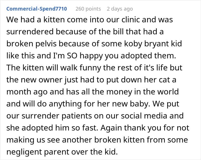 Readers were glad that the woman was able to save the kitten from ending up in the wrong hands