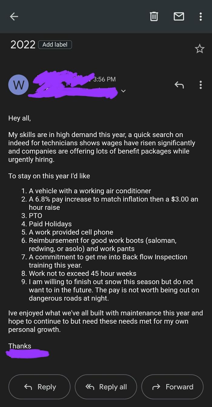 I work as a welder and today my employer individuallly talked to all the welders and offered us a raise because they want to keep employees and they also want to attract new people, when he told me my hourly pay rate when up by 4$ hour l almost couldnt believe it. I work a lot of OT and I work the Night shift. I was feeling burned out from the hours but once I got the raise I was so happy I went right back to work and now I’m working all the OT I can get. I’ve been with this company three months they have bought me a pair of boots, uniforms, prescription safety glasses, and give me a lot of free equipment for protection, and my morale just keeps getting higher while I work till 3 am with a smile on my face.