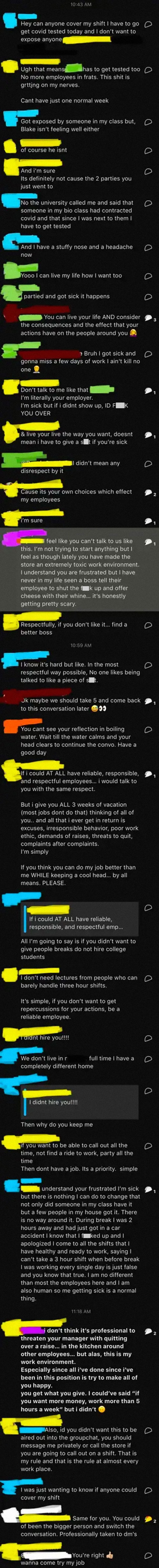 #38 I (16f) Was Sick Throughout My Shift Last Night And Had Another Shift This Morning. Clearly I Called In. My [jerk] Boss Didn’t Take That Well