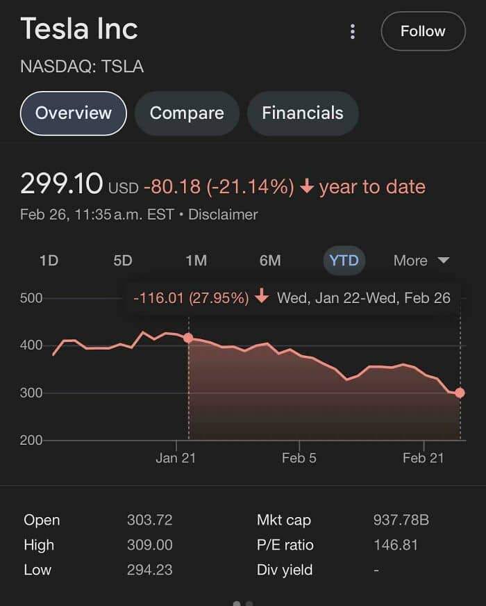 #44 Tsla Is Down Almost 28% Since Elon Did The Salute. He Has Already Lost $100billion Since December