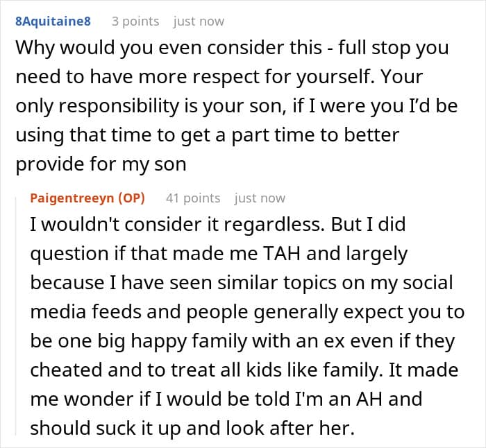 One woman turned to an online community to vent after her ex-husband, who had an affair while she was pregnant, tried guilt-tripping her into babysitting his lovechild three days a week. Shocked, she refused but now wonders if that was a jerk move.