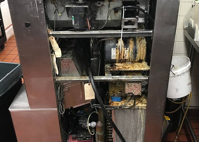 The ice cream machine isn’t broken, it’s down for cleaning because it is a stupid design that has to be supervised at all steps of the process, and takes a long time, instead of being able to simply be started cleaning by the night shift and finished by the morning shift.
