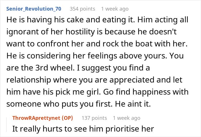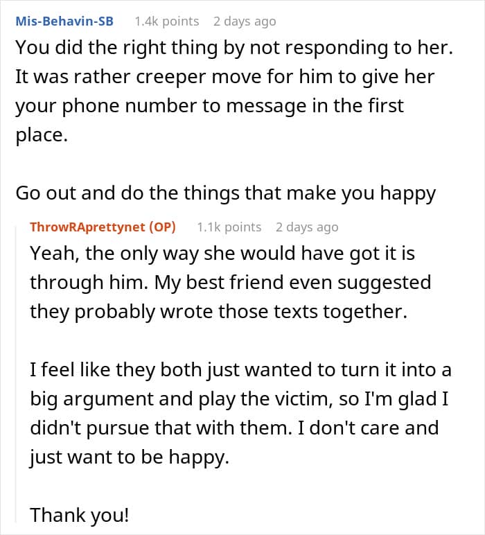 Commenters shared their thoughts on the ex and his friend
