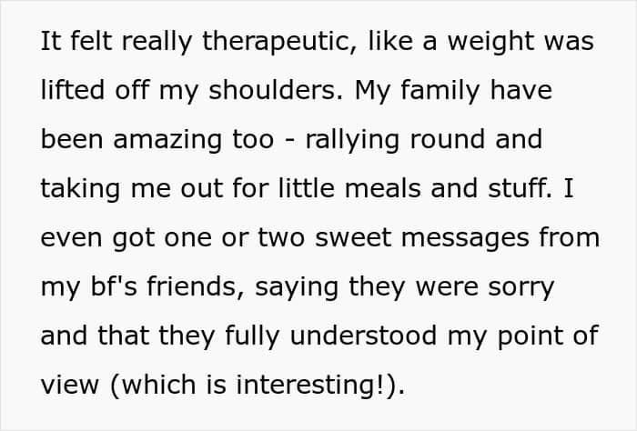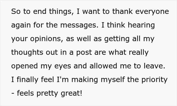 “Forgiveness requires vulnerability. The injured partner might hold onto their anger as a way to protect themselves from further harm. Moving beyond this can be challenging and requires a strong belief that the relationship is worth the effort. Forgiveness is a journey that involves both partners working together to rebuild trust, communicate openly, and demonstrate commitment to change. It requires patience, understanding, and a willingness to heal together. While the path may be difficult, many couples find that working through these challenges can ultimately bring them closer and make their relationship more resilient.” If you want to read what happened to this couple, the woman later shared an update, which can be found below.