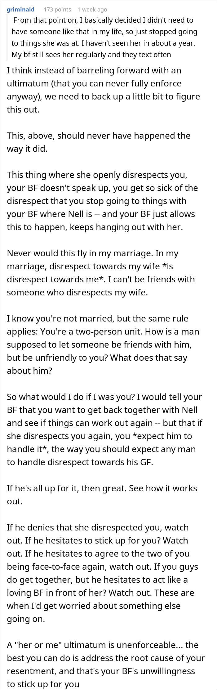 A woman asked for some relationship advice when she realized her boyfriend’s female friend truly disliked her. We got in touch with licensed therapist and founder of Remble, Jordan Green, to learn more about boundaries in relationships. We also reached out to the woman who shared the story via private message and will update the article when she gets back to us.
