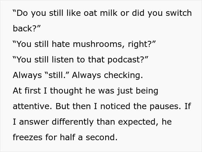 However, what happens when that autopilot suddenly feels manual? Like someone is following instructions instead of feelings. Today’s Original Poster (OP) has started getting disturbed after noticing that her boyfriend seemed less like he remembered her, and more like he was actively studying her.