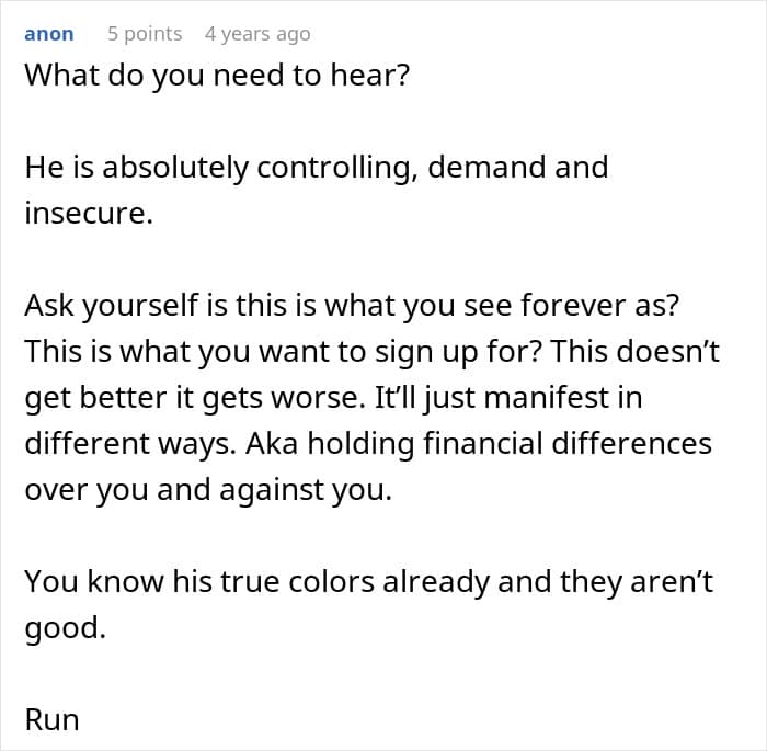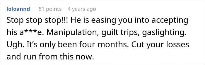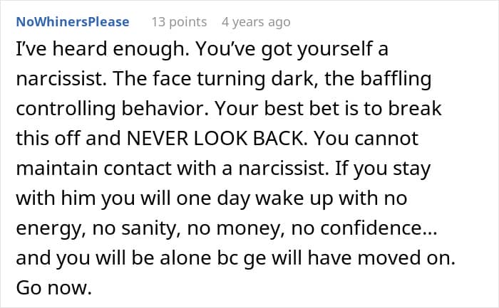 Readers clocked the guy as a massive red flag and urged the author to run