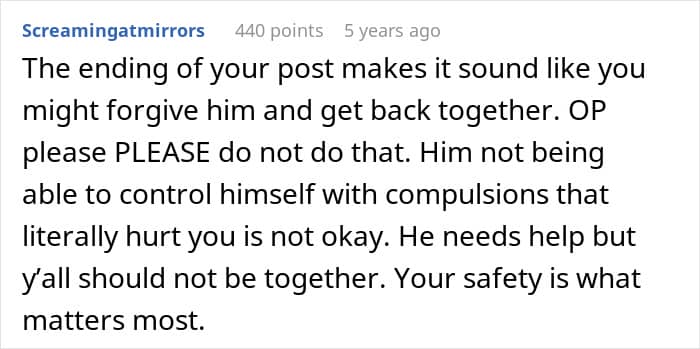 Commenters encouraged the woman to run from the relationship